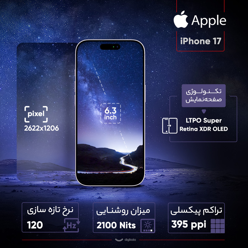 iPhone 17 CH دو سیم کارت ظرفیت 256 گیگابایت و رم 8 گیگابایت - نات اکتیو