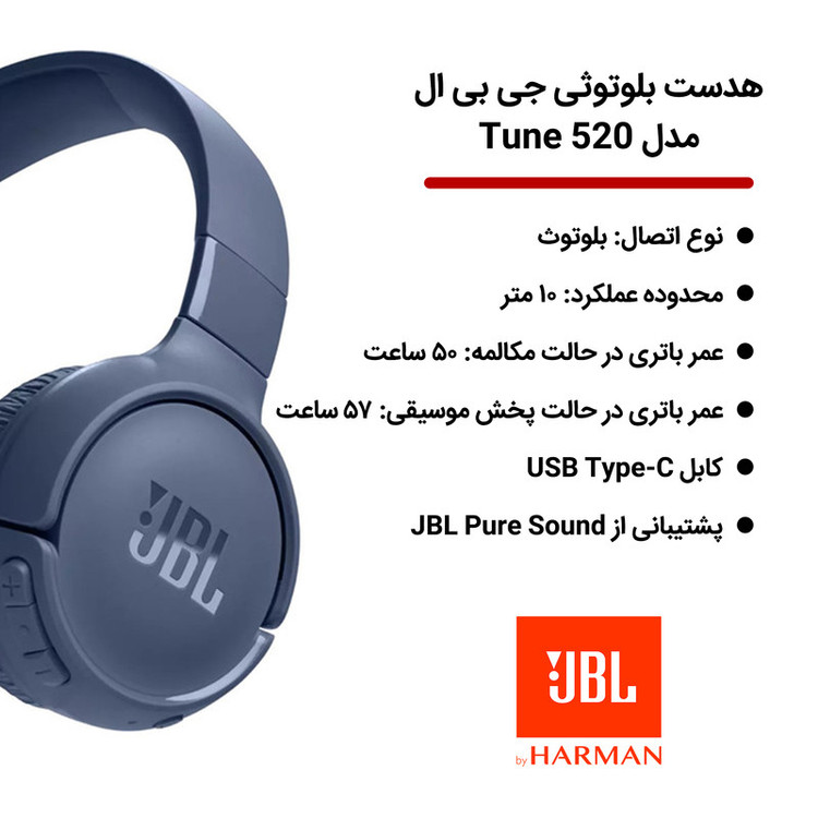 هدست Tune 520 یکی از جدیدترین محصولات JBL میباشد کخه در سال 2022 وارد بازار شده و نسخه ی آپدیت شده ی سری Tune 510 میباشد و از بلوتوث 5.3 پشتیبانی میکنید که اخرین نسخه ی انتقال صدا برای بلوتوث بوده و بالاترین کیفیت صدا رو بدون نیاز به سیم انتقال میدهد و همچنین با یکبار شارژ ( به مدت 2 ساعت و به ازای هر 5 دقیقه 3 ساعت ) قابلیت پخش موسیقی تا 57 ساعت را به شما میدهد و همچنین از JBL Pure Sound پشتیبانی میکند وبرای شما قابلیت مکالمه بدون نیاز به دست و با استفاده از Voice Aware را فراهم میکند