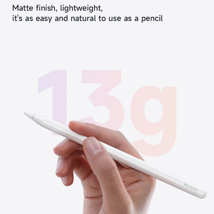 این قلم مک دودو در صورتی که قیمت بسیار به صرفه تری سب به قلم اپل دارد ولی کاملا تمام ویژگی های قلم اپل (Apple Pencil) را دارا می باشد. برخی از مدل های آیپد اپل سازگار با این قلم ساخت شرکت مک دودو به شرح ذیل می باشد : آیپدهای ipad سری 6 و 7 و 8 و 9 و 10 / آیپد مینی ipad mini سری 5 و 6 / آیپد ایر ipad Air سری 3 و 4 و 5 / آیپد پرو 11 اینچ ipad Pro 11 inch سری 1 و 2 و 3 و 4 / آیپد پرو 12.9 اینچ ipad Pro 12.9 inch سری 3 و 4 و 5 و 6 در ساخت این محصول از تکنولوژی های پیشرفته تشخیص هوشمند زاویه شیب قلم و همچنین تشخیص فشار وارد شده توسط دست بر روی نوک قلم ، استفاده شده است که سبب می شود با تغییر فشار دست و زاویه شیب قلم، ضخامت خطوطی که روی نمایشگر آیپد خود می کشید به صورت اتوماتیک مثل مداد طبیعی سریع تغییر کند و بتوانید به راحتی خطوط نازک و پهن ترسیم کنید با استفاده از فناوری حذف سهوی اثر دست بر روی صفحه نمایش ، شما بدون استرس و نگرانی خیلی روان و باسرعت بالا به طراحی خود ادامه می دهید در صورتی که اکثر قلم های موجود در بازار این ویژگی و خصوصیت جذاب و کاربردی را ندارند جنس نوک قلم از پلی اکسی متیلن (POM) قابل تعویض می باشد که بسیار مقاوم بادوام می باشد و بدون کمترین اصطکاک بسیار روان می تواند روی صفحه نمایش حرکت کند بدون اینکه کوچکترین آسیبی به صفحه نمایش دستگاه شما وارد آورد. در بسته بندی این کالا یک نوک قلم اضافی هم جهت تعویض در مواقع موردنیاز قرارداده شده است انتهای بالایی قلم طوری طراحی شده که وقتی آن قسمت رو کمی فشار میدهید و نگه میدارید قلم روشن می شود و یک LED با نوری بسیار جذاب آبی رنگ به شما وضعیت روشن یا خاموش بودن قلم را نشان می دهد